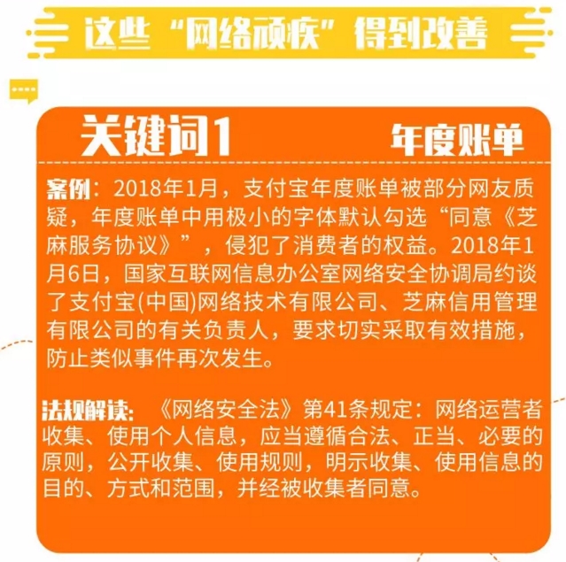 來(lái)源:http://www.tjbtl.cn/news553194.html 發(fā)布時(shí)間:2019-06-19 返回列表于2017年6月1日起正式施行的《網(wǎng)絡(luò)安全法》現(xiàn)已實(shí)施兩周年。在這兩年時(shí)間里,不僅網(wǎng)絡(luò)環(huán)境得到了凈化,而且許多過(guò)去無(wú)法可依的網(wǎng)絡(luò)案件也有了法律依據(jù)。在《網(wǎng)絡(luò)安全法》實(shí)施兩周年之際,來(lái)為大家盤點(diǎn)這兩年來(lái)哪些“網(wǎng)絡(luò)頑疾”得到了改善。