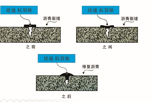 高強(qiáng)抗裂貼與裂縫結(jié)合的過程: